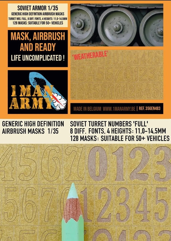 1 Man Army 35GEN483 - 1:35 Soviet Turret Numbers Full 4 Heights masks