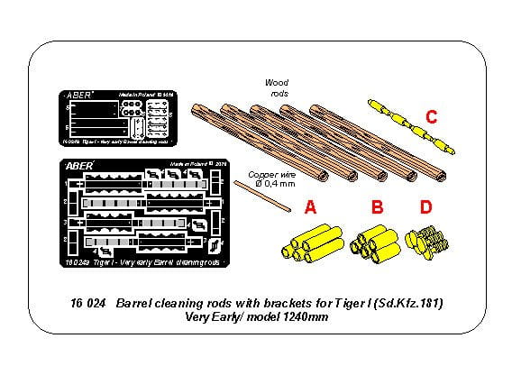 ABER 16024 - 1:16 Barrel cleaning rods with brackets for Tiger I very early model 1240mm