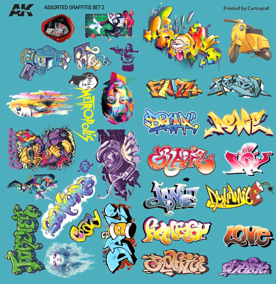 AK INTERACTIVE 9091 Decals: Assorted Graffiti
