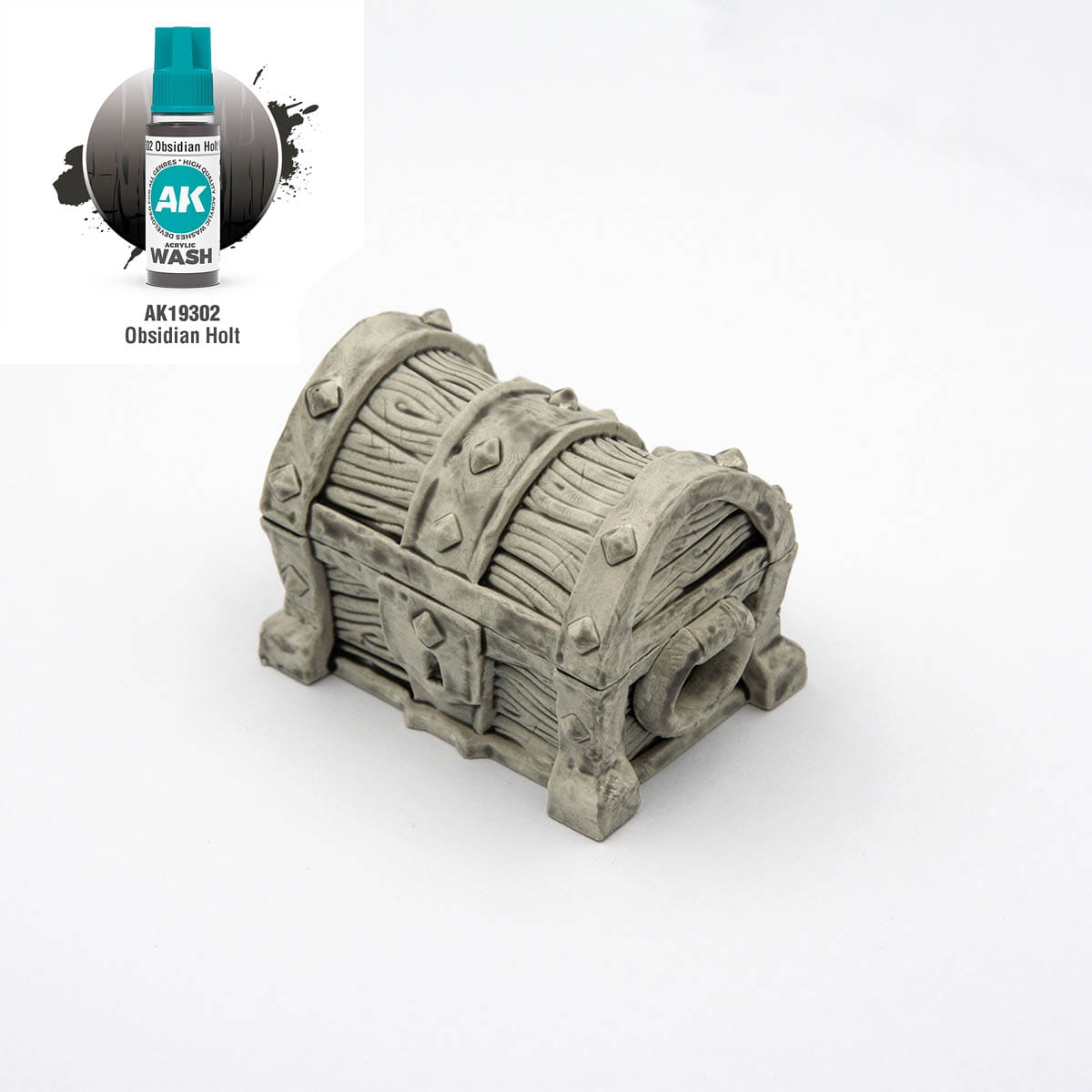 AK Interactive 19302 Obsidian Holt is a dark acrylic wash designed to highlight details on armor, weapons, and mechanical elements. It is especially effective in dark and high-contrast paint schemes.