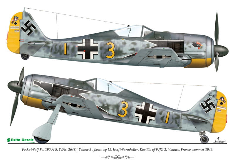 - Focke-Wulf Fw 190 A-5, WNr. 2648, ‘Yellow 3’, flown by Lt. Josef Wurmheller, Kapitän of 9./JG 2, Vannes, France, summer 1943.