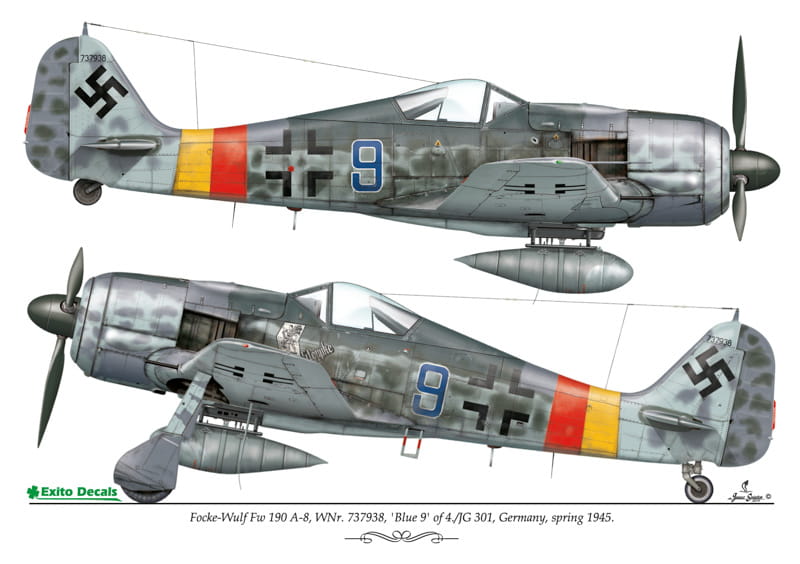 - Focke-Wulf Fw 190 A-8, WNr. 737938, ‘Blue 9’ of 4./JG 301, Germany, spring 1945.