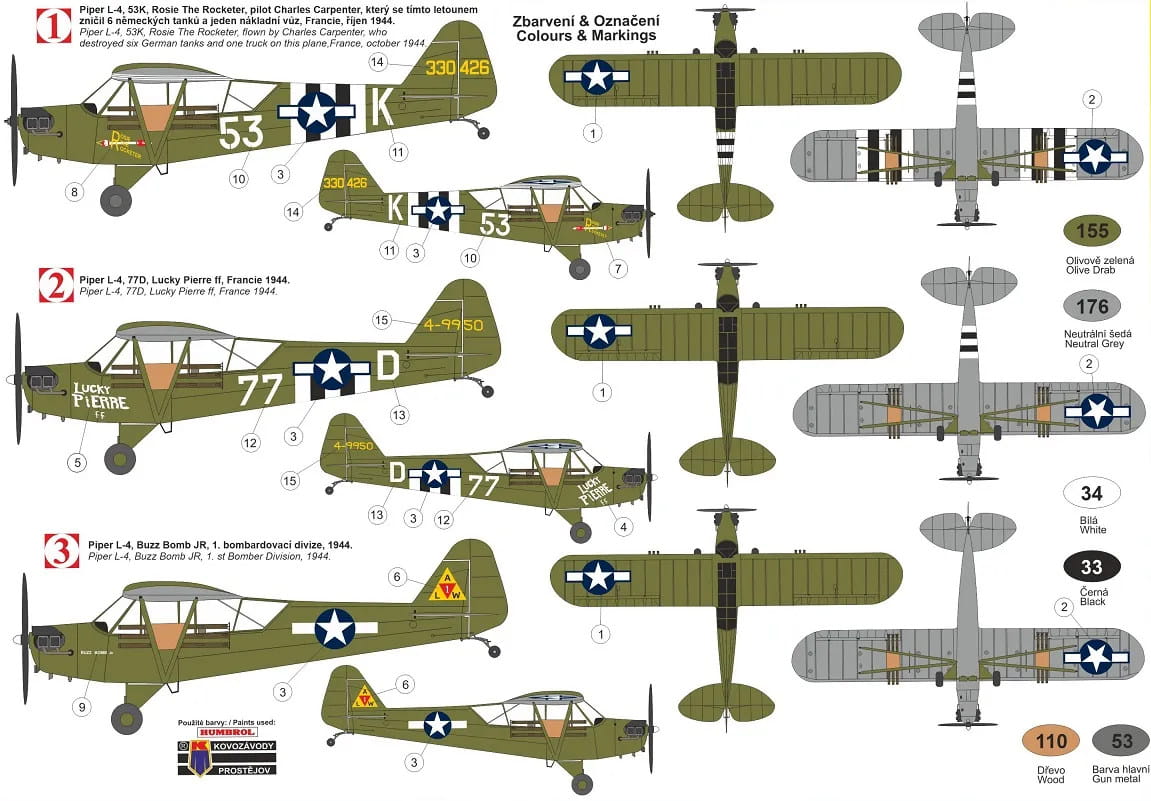 Kovozavody 0190 - 1:72 Piper L-4 Grasshopper w/Bazookas