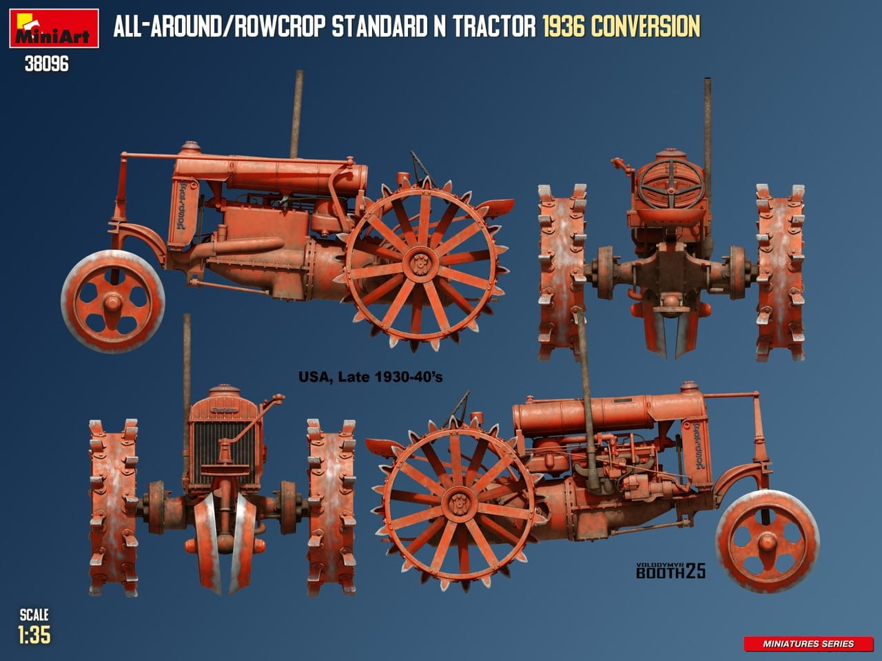 MiniArt 38096 represents the 1936 Standard N agricultural tractor in 1:35 scale. The kit allows the modeller to build either the All-Around version designed for general farm work or the Rowcrop variant adapted for working between crop rows. Tractors of this type were widely used during the interwar period and were sometimes employed in logistical and support roles during wartime.