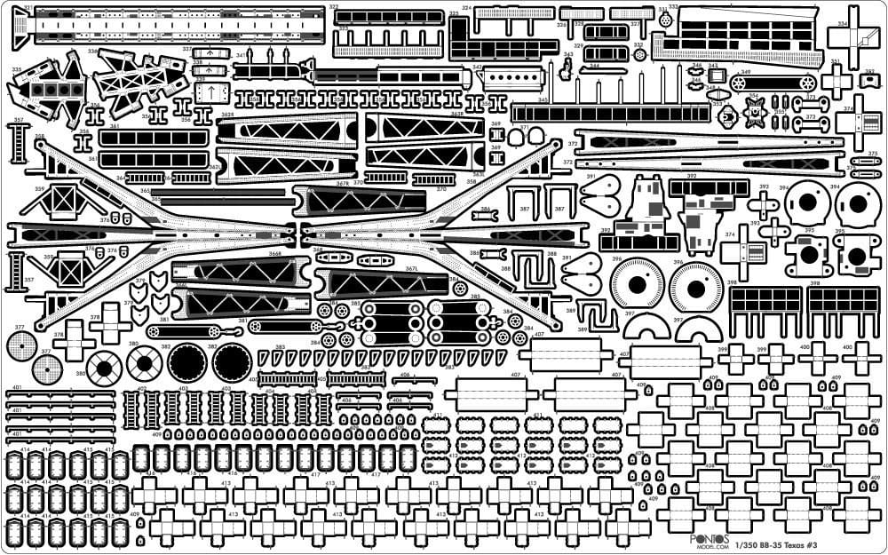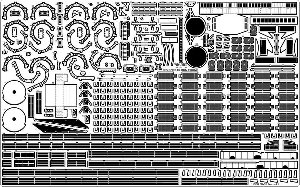 Pontos 35024FN - 1:350 USS BB-35 Texas 1945 Detail Up Set Teak Tone Deck