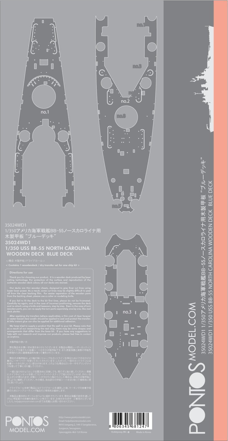 Pontos 35024WD1 - 1:350 USS BB-55 North Carolina Wooden Deck set Type 1