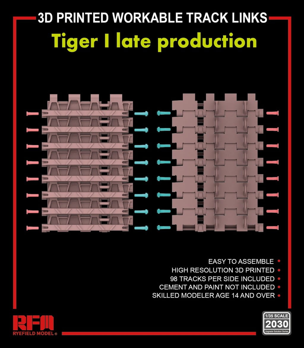 Rye Field Model 2030 - 1:35 3D Printed Workable Track Links Tiger I late production