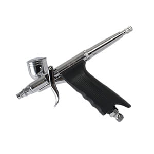 High-quality two-action pistol-type airbrush with gravity feed paint, 0.35mm nozzle and spot velocity adjustment.