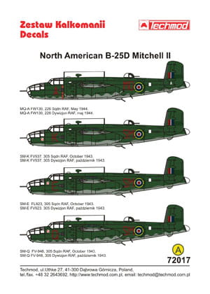 TECHMOD 72017 - 1:72 B-25 D Mitchell
