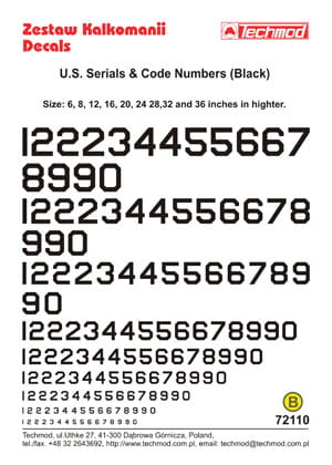 TECHMOD 72110 - 1:72 US Serials and Code numbers black