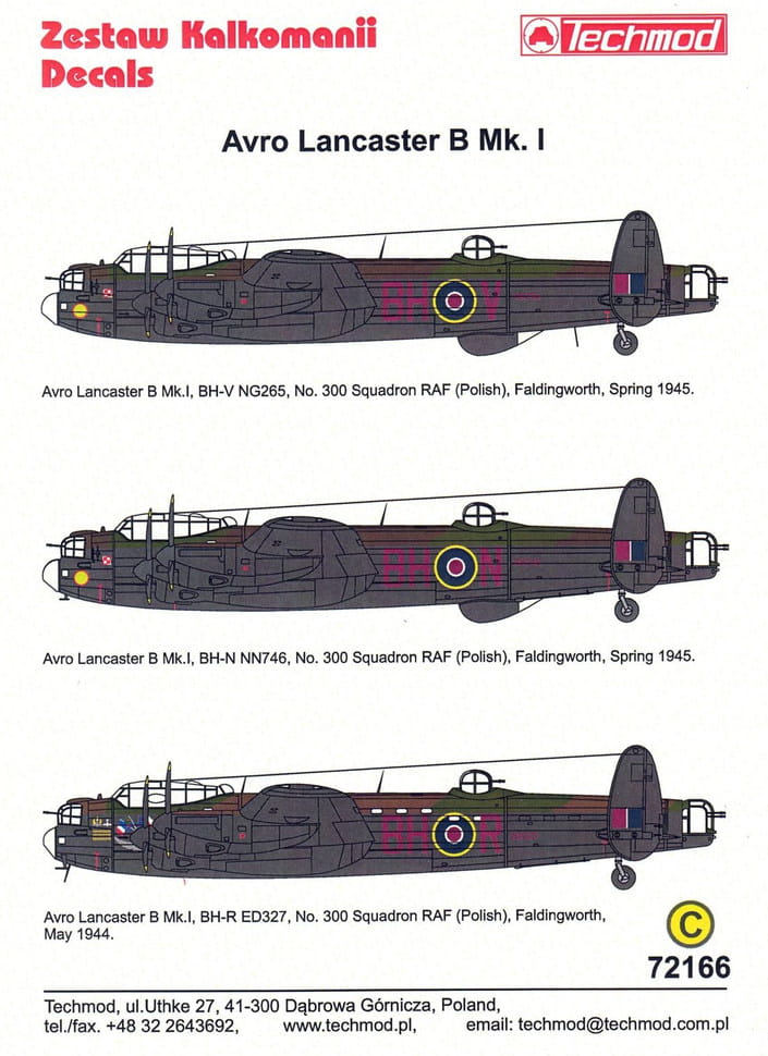 Techmod 72166 – 1:72 Decals for Avro Lancaster B Mk I – No. 300 Polish Bomber Squadron RAF