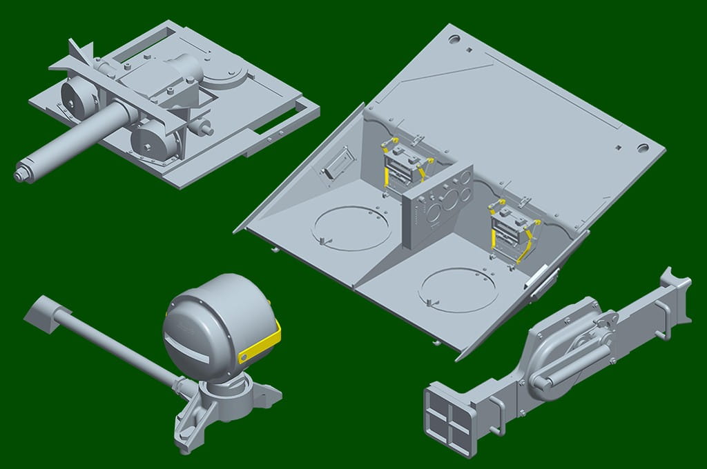 This is a complex model kit aimed at experienced modelers. The large scale allows for accurate depiction of crew space, ammunition storage, and artillery equipment. The tracks are made up of individual links, and the kit includes numerous fine details including photo-etched parts. Ideal for a diorama centerpiece or advanced display project.